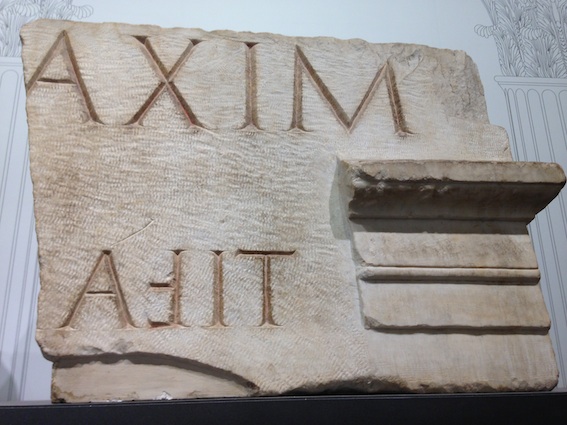 Call me weird, but that’s how I too felt earlier this week when I visited the Epigraphic Museum in Rome’s Baths of Diocletian. As its name and location suggest, it focuses on inscriptions from Antiquity, predominantly in Latin. Many of them look vaguely familiar: for the last five centuries or so, inscriptions in European and New World monuments have tended to emulate the Classical example. If you wonder what I’m talking about, open a new document in Word, choose the Times New Roman typeface and write a line in capitals.