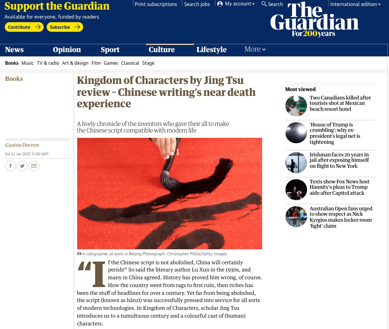 “If the Chinese script is not abolished, China will certainly perish!” So said the literary author Lu Xun in the 1930s, and many in China agreed. History has proved him wrong, of course. How the country went from rags to first ruin, then riches has been the stuff of headlines for over a century. Yet far from being abolished, the script (known as hànzì) was successfully pressed into service for all sorts of modern technologies. In Kingdom of Characters, scholar Jing Tsu introduces us to a tumultuous century and a colourful cast of (human) characters.
